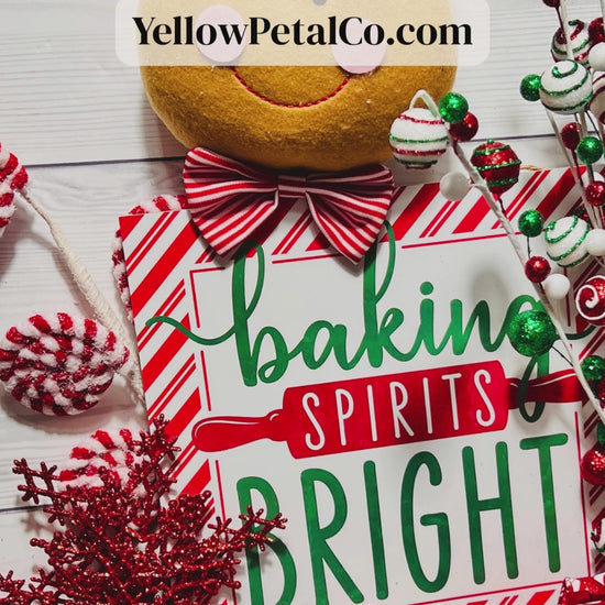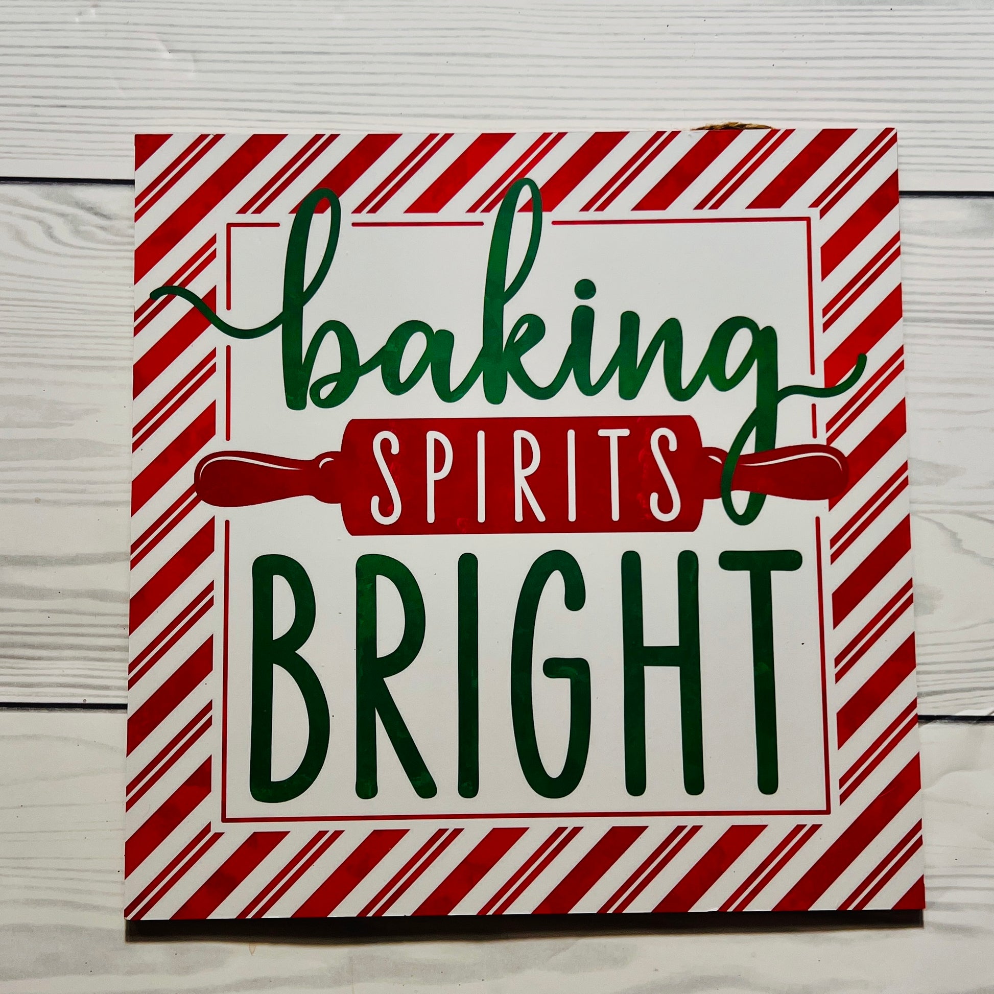 At the heart of this kit is a square wood sign that reads “Baking Spirits Bright” with a cute rolling pin design — the perfect mix of rustic charm and holiday cheer!