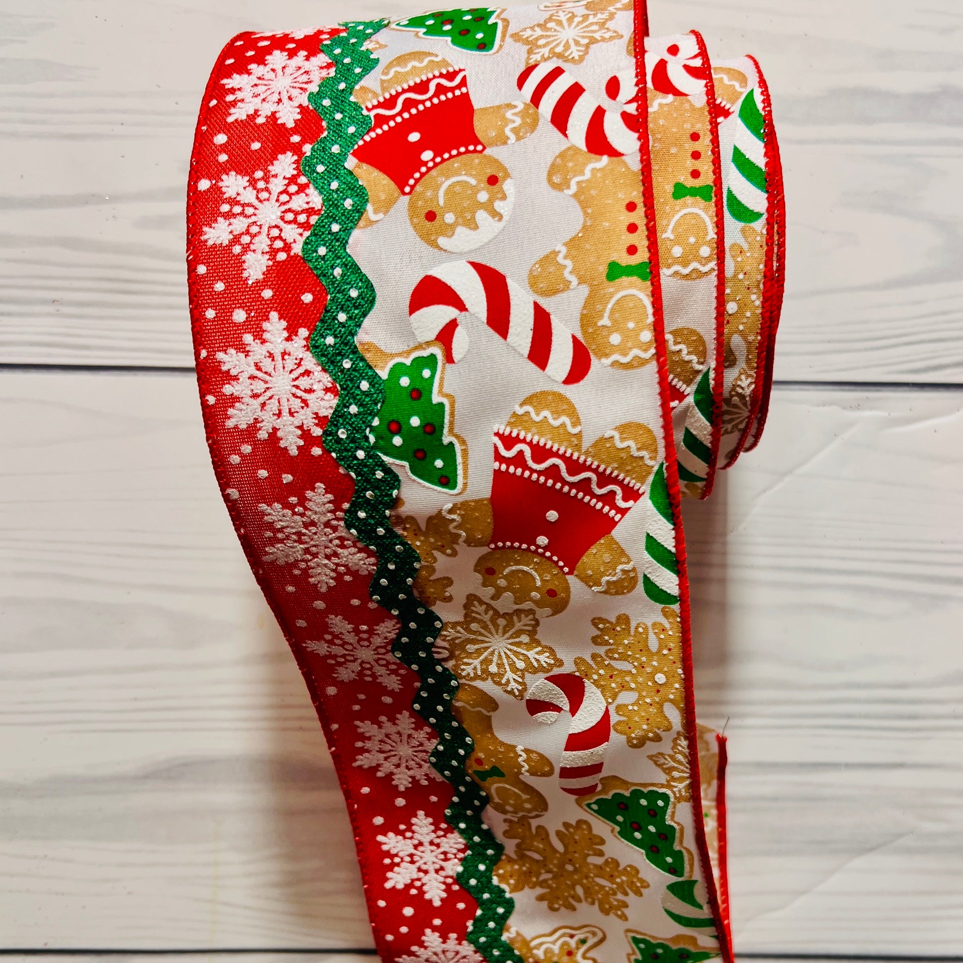 • 4” Gingerbread Festive Red, White & Green Ribbon