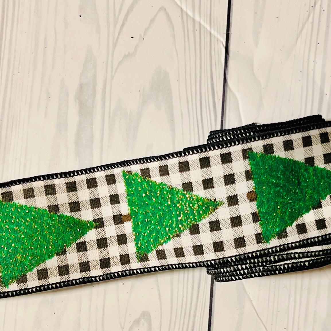 • 2½” Buffalo Plaid with Green Glitter Trees