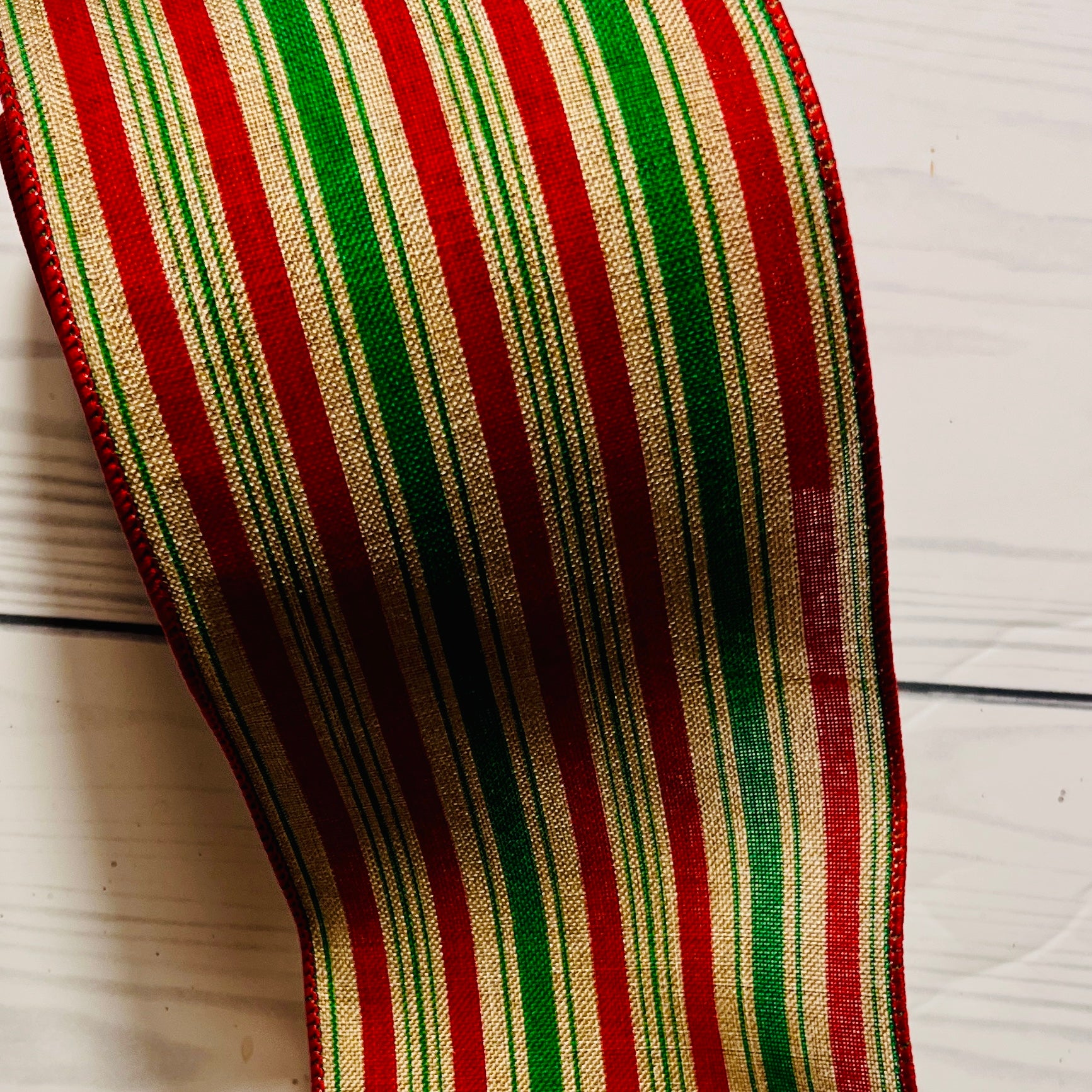 • 4” Red, Green & Tan Stripe Ribbon – bold and rustic