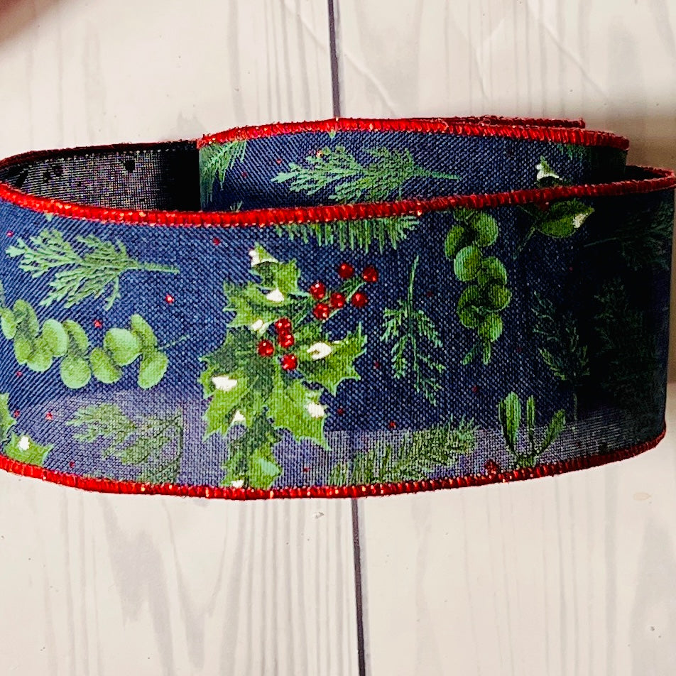 • 2½” Navy Blue Ribbon with Red Berries – a charming winter accent